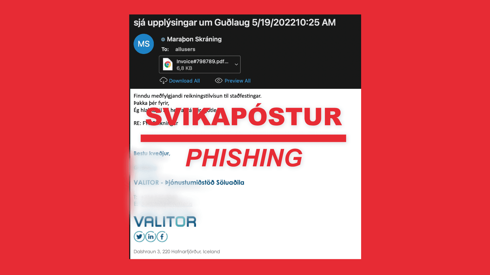 Við ítrekum mikilvægi þess að viðhengi í fyrrgreindum pósti verði ekki opnað.